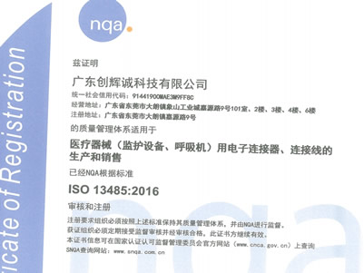 廣東創(chuàng)輝誠(chéng)科技有限公司順利通... 2025年4月1日廣東創(chuàng)輝誠(chéng)科技有限公司順利通過(guò)ISO 13485:2016認(rèn)證。 創(chuàng)輝誠(chéng)自2004年成立以來(lái)一直致力于從事連接器、線纜組件的研... More+
